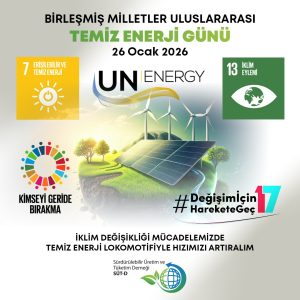 Sürdürülebilir Üretim ve Tüketim Derneği Uluslararası Temiz Enerji Günü açıklamasında enerjinin değişmek için dönüşüm yolunda adil ve kapsayıcı bir geçiş için iklim değişikliği mücadelesindeki kritik konuma dikkat çekerek temiz enerji lokomotifiyle hızımızı artıralım çağrısı yaptı.